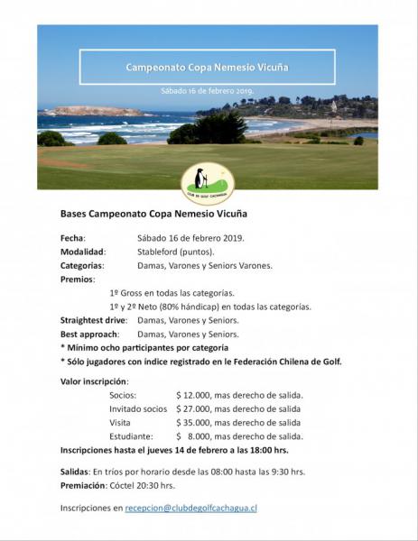 Bases Campeonato Copa Nemesio Vicuña, sábado 16 de febrero 2019.