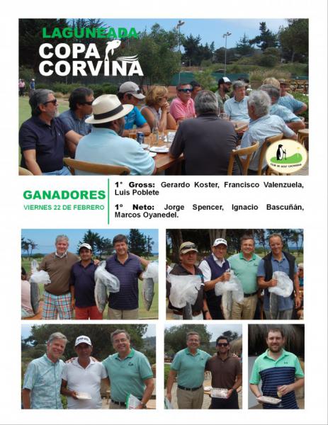 Nuestra 6° y última Copa Corvina 2019, se jugó con laguneada en modalidad Modalidad Stableford 20% de la suma de los handicap, en caso de haber un jugador con handicap menor, se juega con ese handicap), con salidas en tríos, dos socios + 1 caddie, contó con una gran participación. Los ganadores: 1° Gross: Gerardo Koster, Francisco Valenzuela, Luis Poblete 1º Neto: Jorge Spencer, Ignacio Bascuñán, Marcos Oyanedel. Con esto concluye nuestra Copa Corvina 2019.